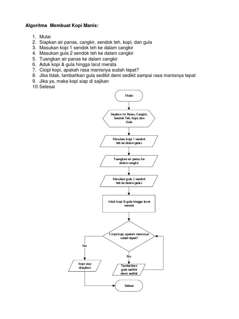 Tinggal memanaskan air dan menyelupkan kantung teh ke dalam air panas tersebut. Ambil teh celup kemudian masukan kedalam gelas; Algoritma membuat teh hangat 1 gelas 3. Tuangkan air hangat ke dalam gelas berukuran 100 ml Makalah tentang algoritma, pseudocode dan flowchart oleh yufi eko firmansyah 1 d3 it b bab i pendahuluan pada saat kita membuat sebuah program sering kali .