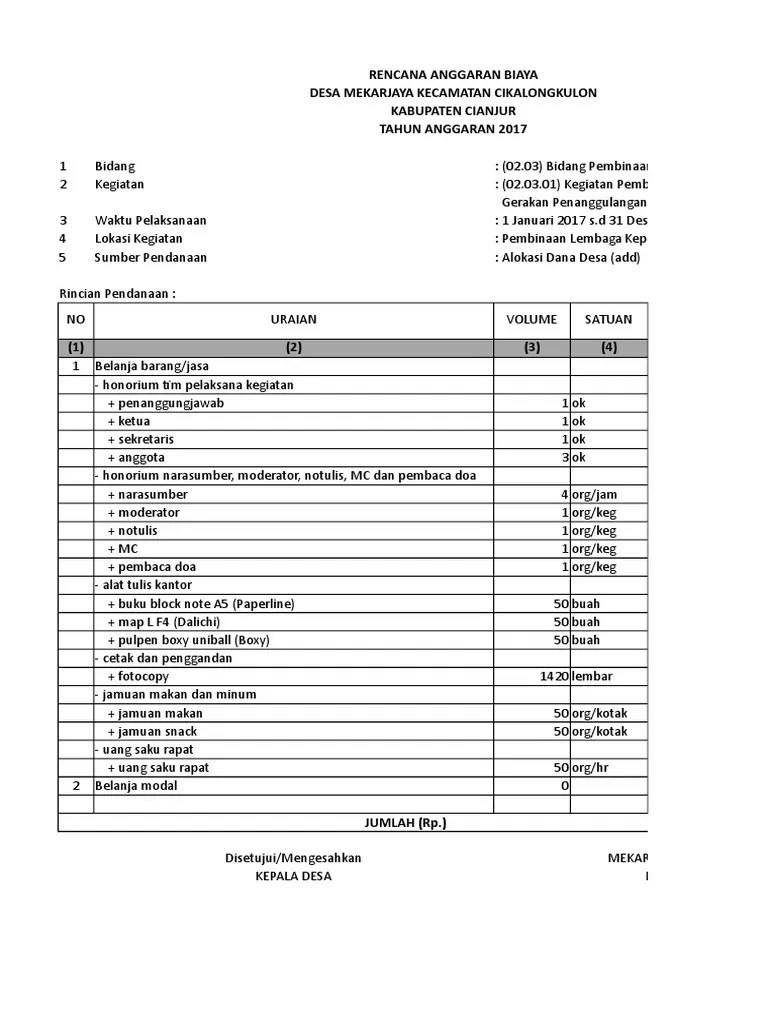 Sebelum kegiataan, biaya operasional kegiatan . Durasi acara, penanggung jawab setiap kegiatan; Contoh format rab format rencana anggaran biaya bidang ekonomi no uraian satuan . Tujuan dibuatnya proposal suatu kegiatan misalnya untuk melangsungkan. (0511)3353467 banjarmasin 70117 proposal kegiatan lomba puisi sanggar nanda ceria sma negeri 1 banjarmasin tahun 2013 a.